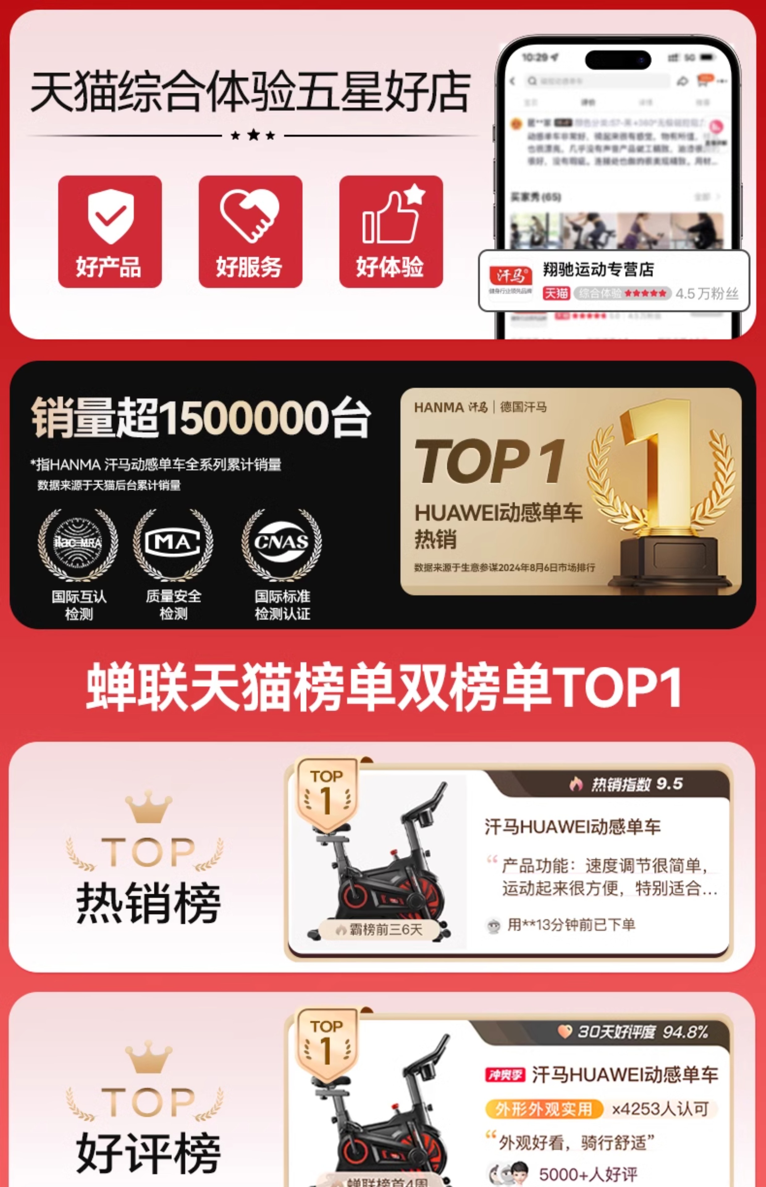 产品名称 : 德国汗马动感单车家用室内磁控运动健身自行车减肥超静音健身器材