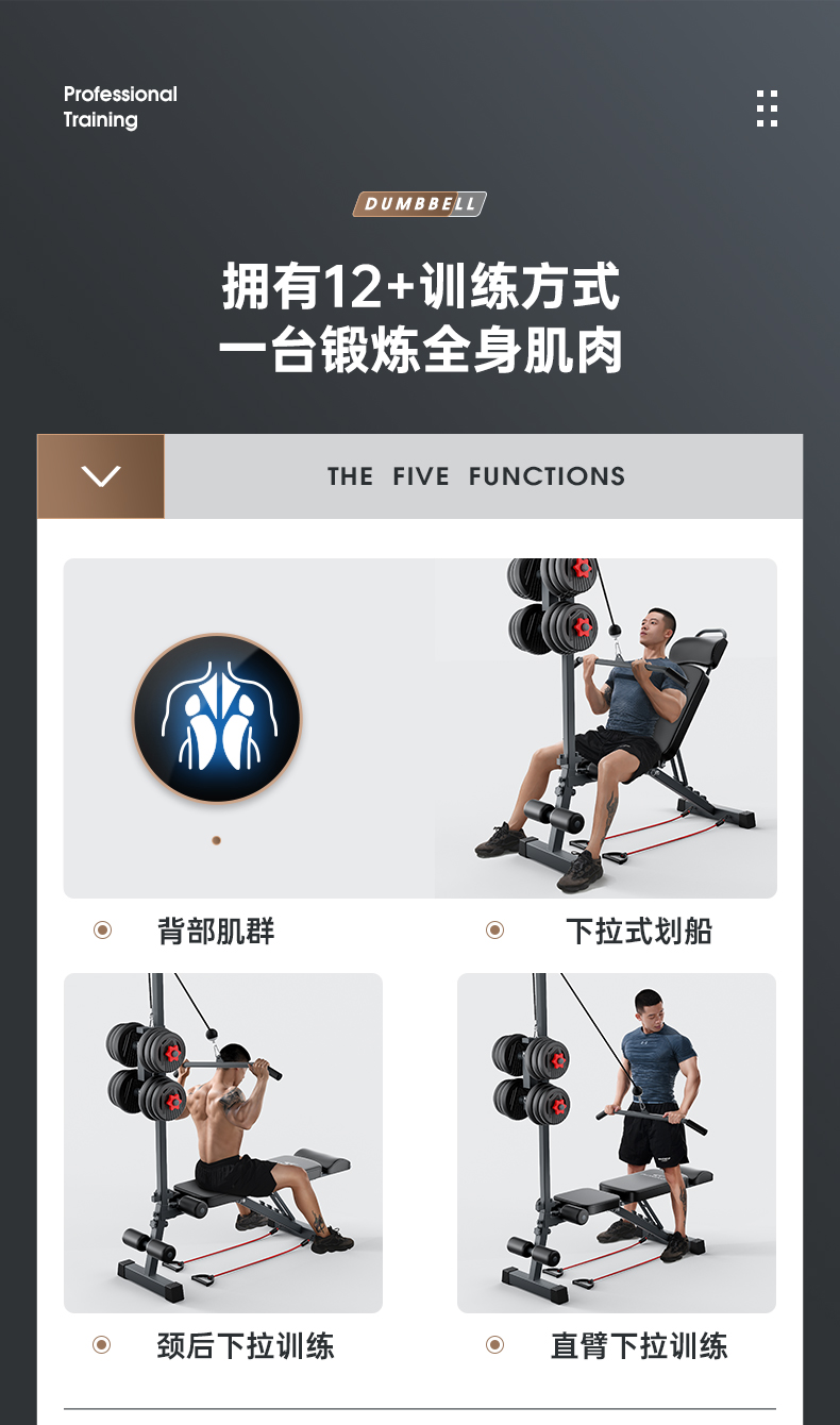哑铃凳仰卧起坐辅助器家用健身器材多功能飞鸟商用男士杠铃卧推椅